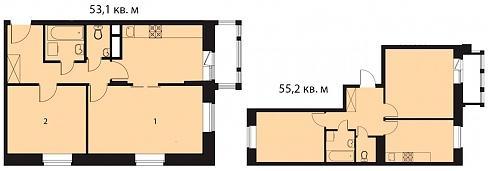 Двухкомнатные квартиры в «классических домах» обладают угловыми и распашными планировками. Некоторые из них решены в студийном стиле, а общим для всех являются настолько скромные метражи, насколько это вообще можно себе представить: