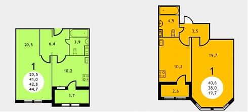 | Сентябрь 2016 | 40,6-44,7 м2 | 2 334 500 - 2 614 950 ₽ | ~58 922 ₽ |