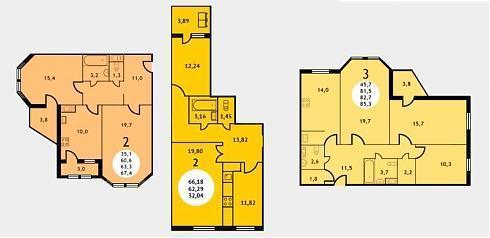 | Январь 2017 | 66,18-82,9 м2 | 3 370 000 - 4 416 600 ₽ | ~52 612 ₽ | 3.18% |