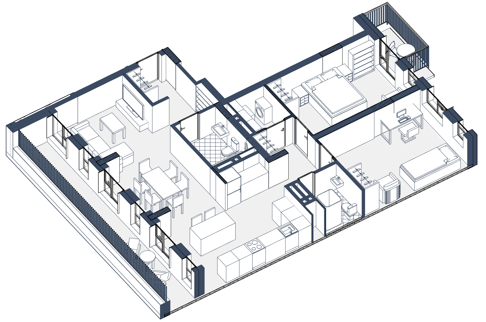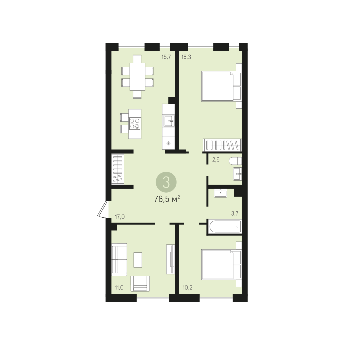 Планировки трехкомнатных квартир могут быть либо угловыми, либо распашными, наличие гостевого санузла строго обязательно.
