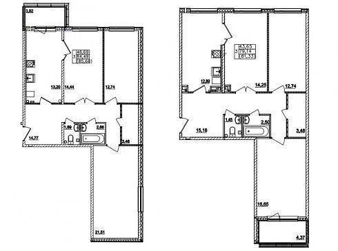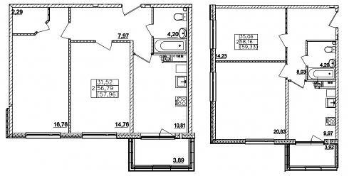 Трехкомнатные. В любом случае, это будет "распашонка" с гостевым санузлом – метраж на Ваше усмотрение:
