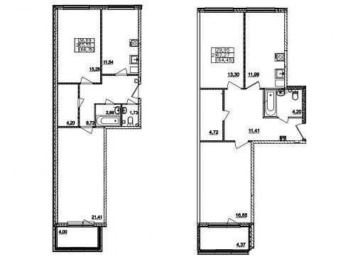 | Ноябрь 2017 | 56,79-65,55 м2 | 3 802 277 - 5 695 928 ₽ | ~78 498 ₽ | 1.12% |
