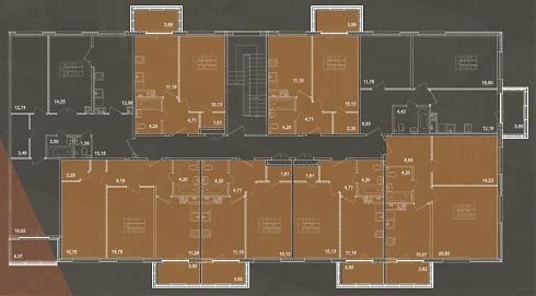Корпуса отличаются количеством секций и, соответственно, количеством квартир в них – от 17 в односекционном доме и 45 в двухсекционном до 69 в трехсекционном корпусе. А вот количество квартир на лестничной клетке в любом случае не превышает семи-восьми: