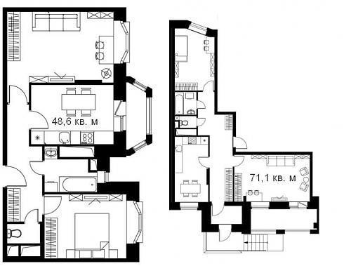 Классификация планировочных решений, используемая Урбаном, подразумевает наличие в квартире тех или иных опций, например, французских окон, более высоких по сравнению со стандартными, потолков (при стандарте в 2,77 м, Хайфлет и Эколофт имеют потолки 3,22 и 3,62 м, соответственно), окон в ванных комнатах, собственных террас и т.п. Причем необязательно, что в выбранной Вами квартире окажется только одна из упомянутых особенностей – здесь можно получить все это одновременно. Если рассматривать планировочные решения в самом примитивном понимании, касающемся расположения внешних и внутренних стен, то имейте ввиду, что здесь можно погрузиться в размышления очень надолго – вариантов тьма-тьмущая. Держите в уме разнообразие фасадов – все это наложило отпечаток и на внутренности домов. Ну и не забывайте про метражи – шаг тут очень маленький.