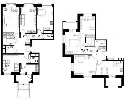 Дом № 7 относится к серии «Классика», подразумевающей наличие квартир без отделки, но с выстроенными из пазогребневых блоков межкомнатными перегородками. Дом №2 это «Классика-Smart» с квартирами из 4 уровней и 7 стилей отделки.