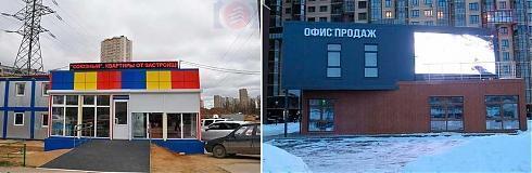 Скромный сборный офис с недописанной вывеской сменился на гораздо более солидный офис продаж.