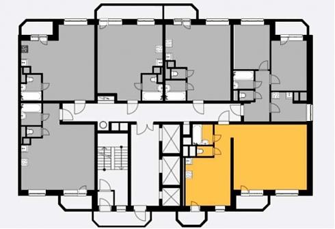 Шесть квартир на лестничной клетке обслуживаются тремя лифтами.