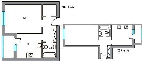 Большинство двухкомнатных квартир имеют простые линейные и распашные планировки: