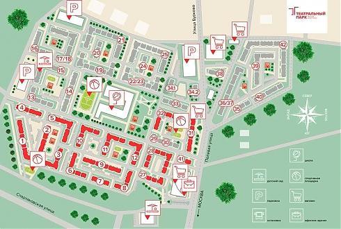 Всего в ЖК «Театральный Парк» будет построено более 40 жилых корпусов, обеспеченных двумя муниципальными детскими садами и одной школой.