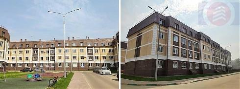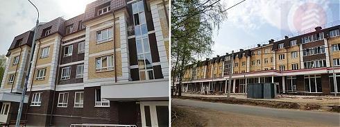 Все дома здесь четырехэтажные, строятся они по монолитной бескаркасной технологии, наружные стены делаются из газосиликатных блоков с минеральным утеплителем и облицовываются кирпичом. Неожиданным бонусом оказываются лифты – в каждой секции устанавливается один лифт производства Карачаровского механического завода. Квартиры в большинстве корпусов сдаются без какой-либо отделки с выполненной стяжкой в помещениях санузлов и с двухкамерными стеклопакетами в окнах, как минимум, с двумя открывающимися створками. Исключение составляет корпус №13, в котором квартиры передаются собственникам с отделкой «от застройщика», включающей в себя наличие качественной металлической двери, натяжных потолков, плитки в коридоре и санузле, ламината в комнатах, обоев под покраску и установку сантехники.