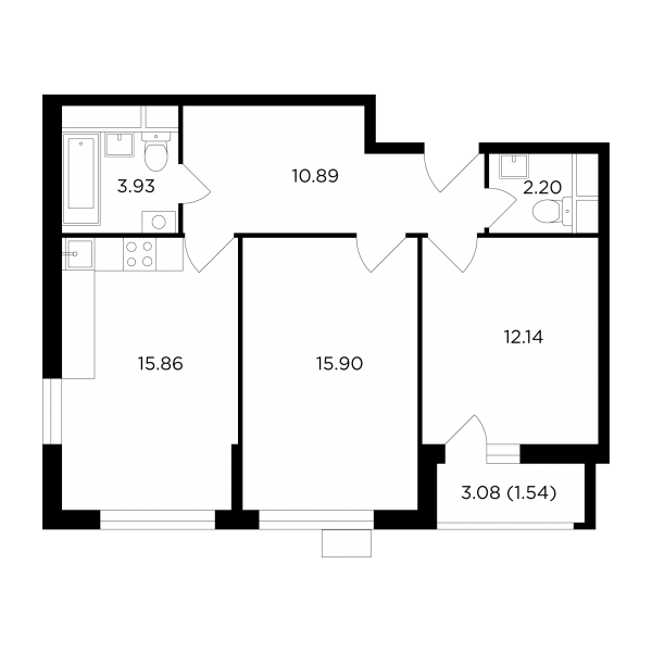В двухкомнатных квартирах царят безальтернативные линейные планировки, причем в каждой такой квартире нашлось место гостевому санузлу: