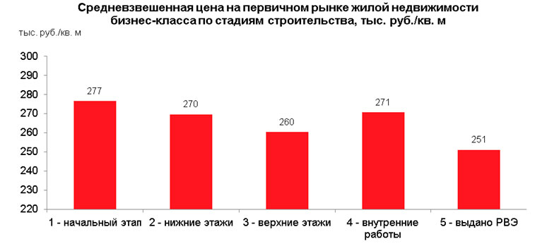 Самый высокий уровень цен зафиксирован в новостройках на начальном этапе строительства – 277 тыс. руб./кв. м. При этом минимальный показатель отмечен в проектах, уже введенных в эксплуатацию – 251 тыс. руб./кв. м.
