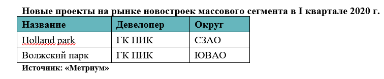 По данным «Метриум», в конце I квартала 2020 года рынок новостроек массового сегмента «старой» Москвы включал 87 проектов. За три месяца начались продажи в двух новых жилых комплексах группы компаний «ПИК»: Holland park и «Волжский парк».