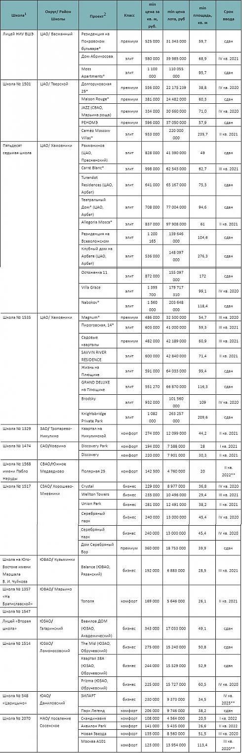 На сегодняшний день на столичном рынке недвижимости можно приобрести квартиры и апартаменты в новостройках рядом с 15 из 20 топовых образовательных организаций. По оценке аналитиков компании «Метриум», в 15 минутах ходьбы от них реализуется 47 проектов, где продается около 5,9 тыс. квартир и апартаментов. В пешей доступности от остальных пяти школ актуальных предложений в новостройках нет.