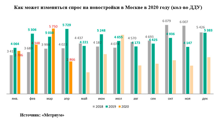 По оценкам экспертов «Метриум», спрос на жилье в Москве по итогам 2020 года может снизиться на 20-30%. Летом после снятия ограничений произойдет всплеск числа сделок, которые будут заключать клиенты, не успевшие это сделать до самоизоляции. Однако уже осенью восстановительный рост иссякнет, эконмическая ситуация ухудшится (станет ясно, сколько предпринимателей не «пережили» пандемию).