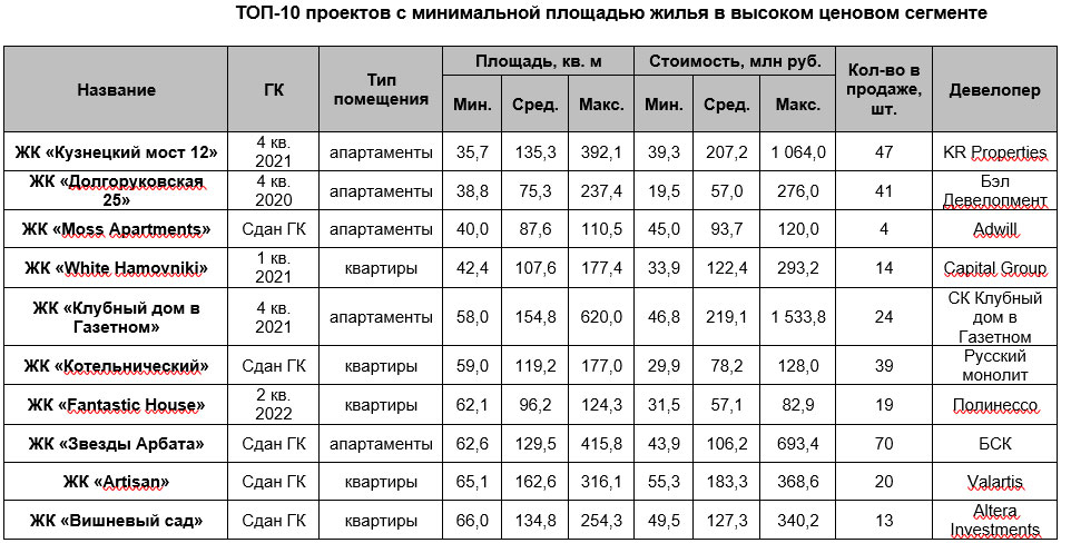 Обсуждение Лоты от 35 кв. м есть даже в элитном сегменте