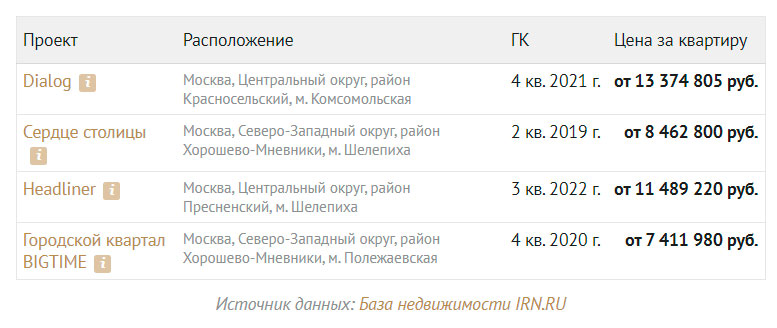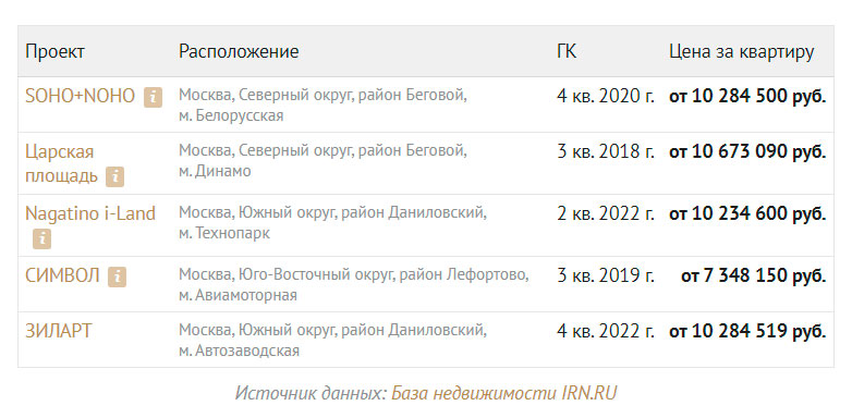 В центральном административном округе очень мало новостроек с квартирами дешевле 15 млн рублей. В базе недвижимости IRN.RU в июне есть 14 проектов с таким ценником. В большинстве из них продаются апартаменты, официальные квартиры предлагаются только в четырех проектах.
