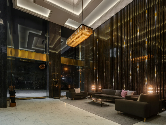 Размеры лобби также стали больше и отвечают архитектурному масштабу современных новостроек. К примеру, в премиальном квартале «Прайм Парк» высота потолков в вестибюле достигает 7,5 м, а в городском квартале бизнес-класса «Ривер Парк» – 6,5 м.