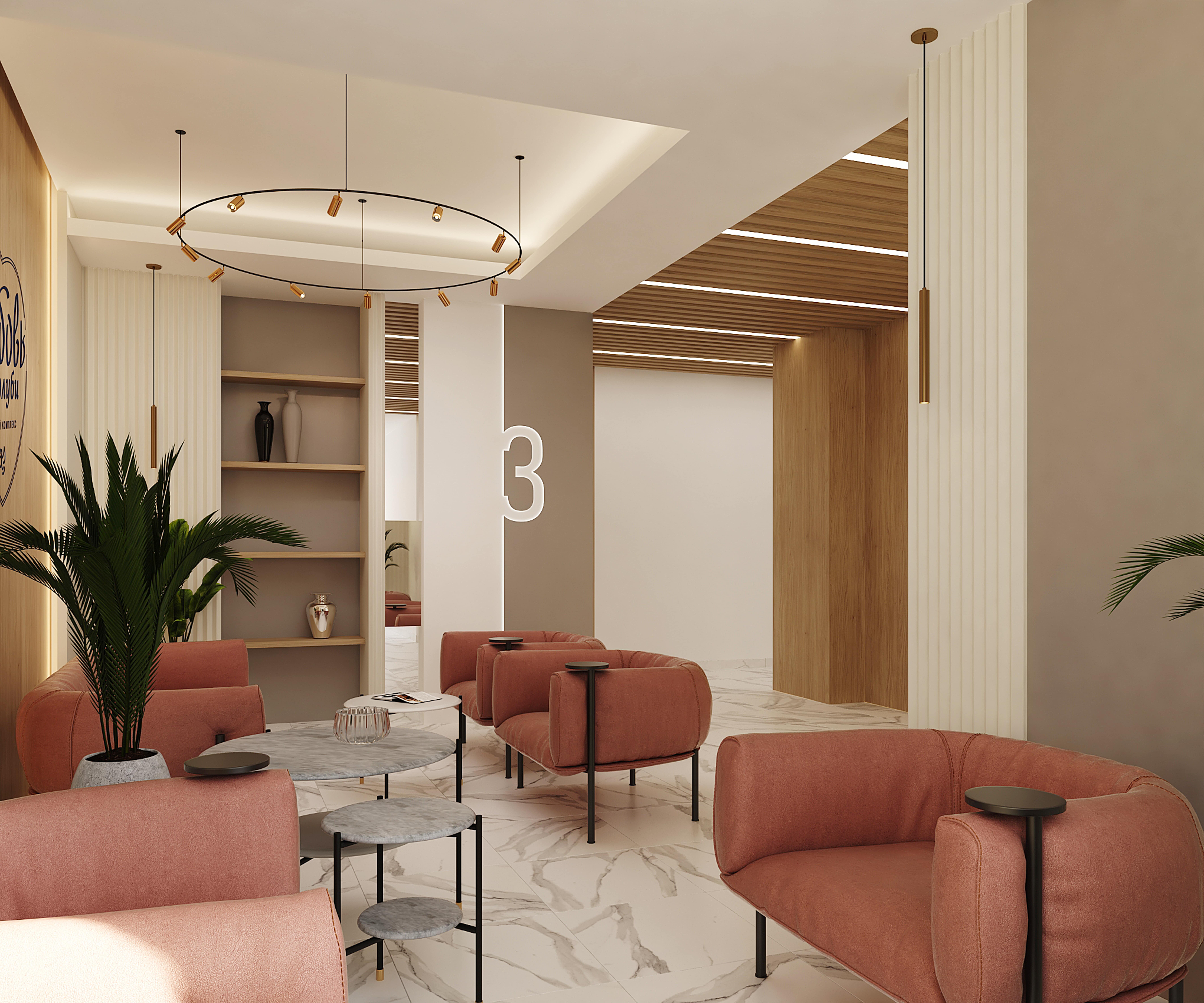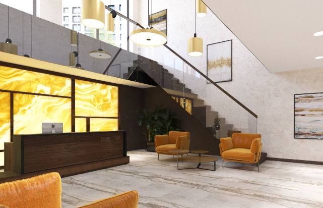 2. Вестибюль. Первое внутреннее помещение здания, в котором может быть ресепшн, зона отдыха и ожидания, пост консьержа или охраны.