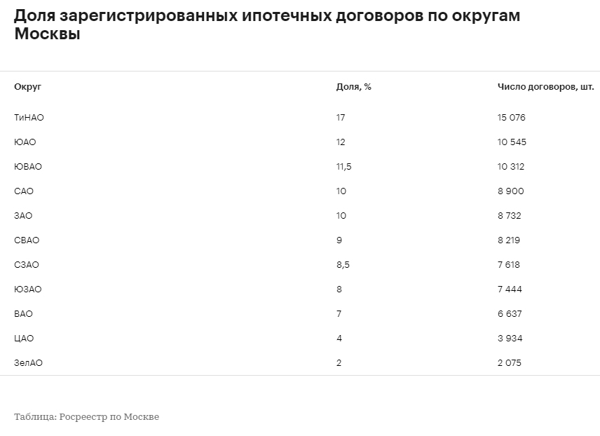 Обсуждение Росреестр назвал округа Москвы с наибольшим числом ипотечных сделок