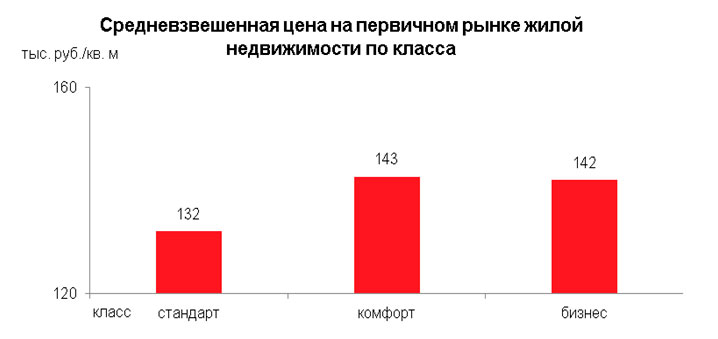 «Разница между средней ценой в классах стандарт и комфорт составляет 10,6 тысяч рублей. При этом показатель стандарт-класса увеличился со 123 тыс. руб./кв. м до 132 тыс. руб./кв. м, а комфорт-класса – с 135 тыс. руб./кв. м до 143 тыс. руб./кв. м, - комментирует Владимир Моребис, партнер, коммерческий директор компании Est-a-Tet. – Интересно также отметить, что цены в комфорт- и бизнес-классах сопоставимы, так как проекты более высокого сегмента находятся на начальной стадии строительства».