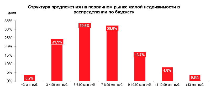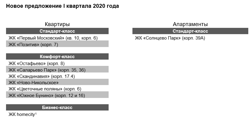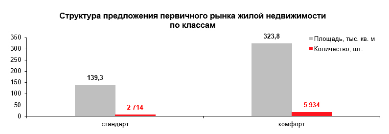 Первичное предложение Новой Москвы представлено только в стандарт- и комфорт-классах, новостройки бизнес-класса за квартал были полностью реализованы. При этом в проектах сегмента комфорт в продаже находится 323,8 тыс. кв. м, в «стандартных» комплексах показатель составляет 139,3 тыс. кв. м.