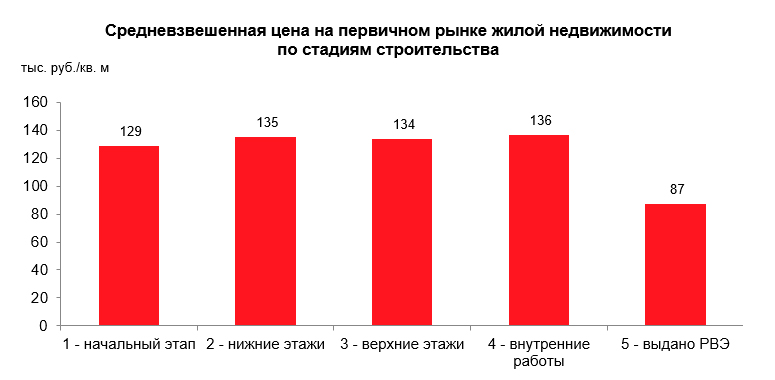 Снижение цены произошло только в сданных корпусах (со 114 до 87 тыс. руб./кв. м), что обусловлено структурой предложения: 80% предложения такого формата располагается в ТАО и лишь 20% в НАО. Самыми дорогими стали новостройки, которые находятся на этапе внутренних работ – средняя стоимость составляет 136 тыс. руб./кв. м.