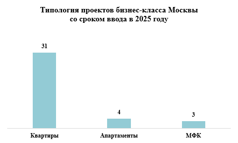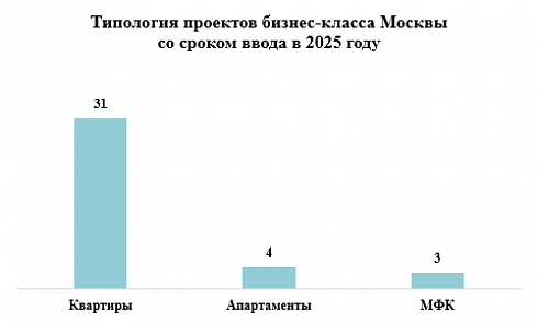 Столичные застройщики в 2025 году планируют ввести в эксплуатацию 131 корпус в 38 жилых и апарт-комплексах бизнес-класса. Темпы ввода корпусов относительно 2024 года снизятся на 28% (131 против 182). Среди новостроек бизнес-класса со сроком ввода в 2025 году – 31 ЖК, 4 апарт-комплекса и 3 мультиформатных проекта с квартирами и апартаментами.
