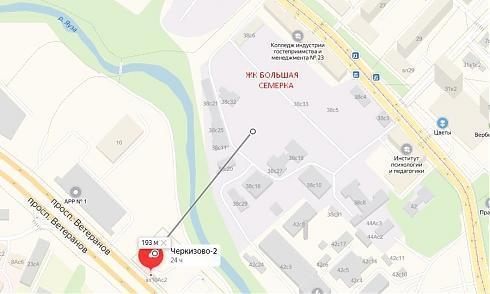 А вот от «Бульвара Рокоссовского» прямо до «Большой Семерки» доехать не получится, автобус сворачивает на соседнюю улицу метров за четыреста до стройплощадки. Остаток пути придется пройти пешком.