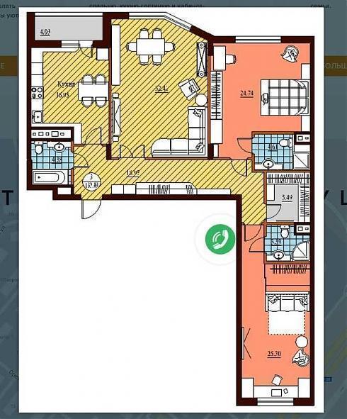 А как вам трехкомнатная квартира с тремя (!) санузлами? Причем не маленькими. Добавим к этому прихожую 18,5 кв. м, кладовку 5,49 кв. м и лоджию 4 кв. м – вот он, бытовой простор. Есть и еще кое-что: кухня почти 15,5 кв. м, гостиная 32 кв. м и две спальни 24,74 и 35,3 кв. м. Это ли не комфортабельная квартира? Значит и здесь застройщик попадает в категорию «самое лучшее». Ставим плюс под № 5