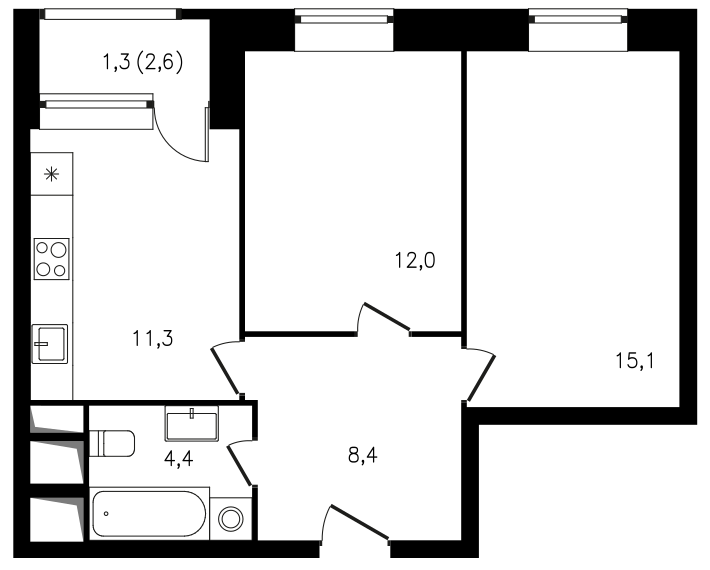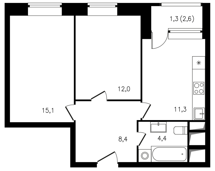 Двухкомнатные также представлены в разных вариантах, включая евро-трешки. Практически каждая квартира может «похвастаться» очень просторным холлом. В некоторых комнатах по два окна.