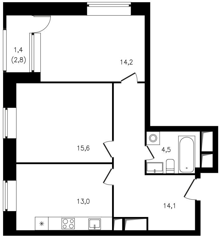 Единственные квартиры, где нет лоджий – это студии. Впрочем, на момент моего визита в офис продаж студии были почти полностью раскуплены (осталась лишь одна). Однокомнатные в массе своей «типовой» планировки, различаются расположением лоджий и размерами помещений. Некоторые однушки вполне можно назвать и евро-двушками, благодаря просторным кухням.