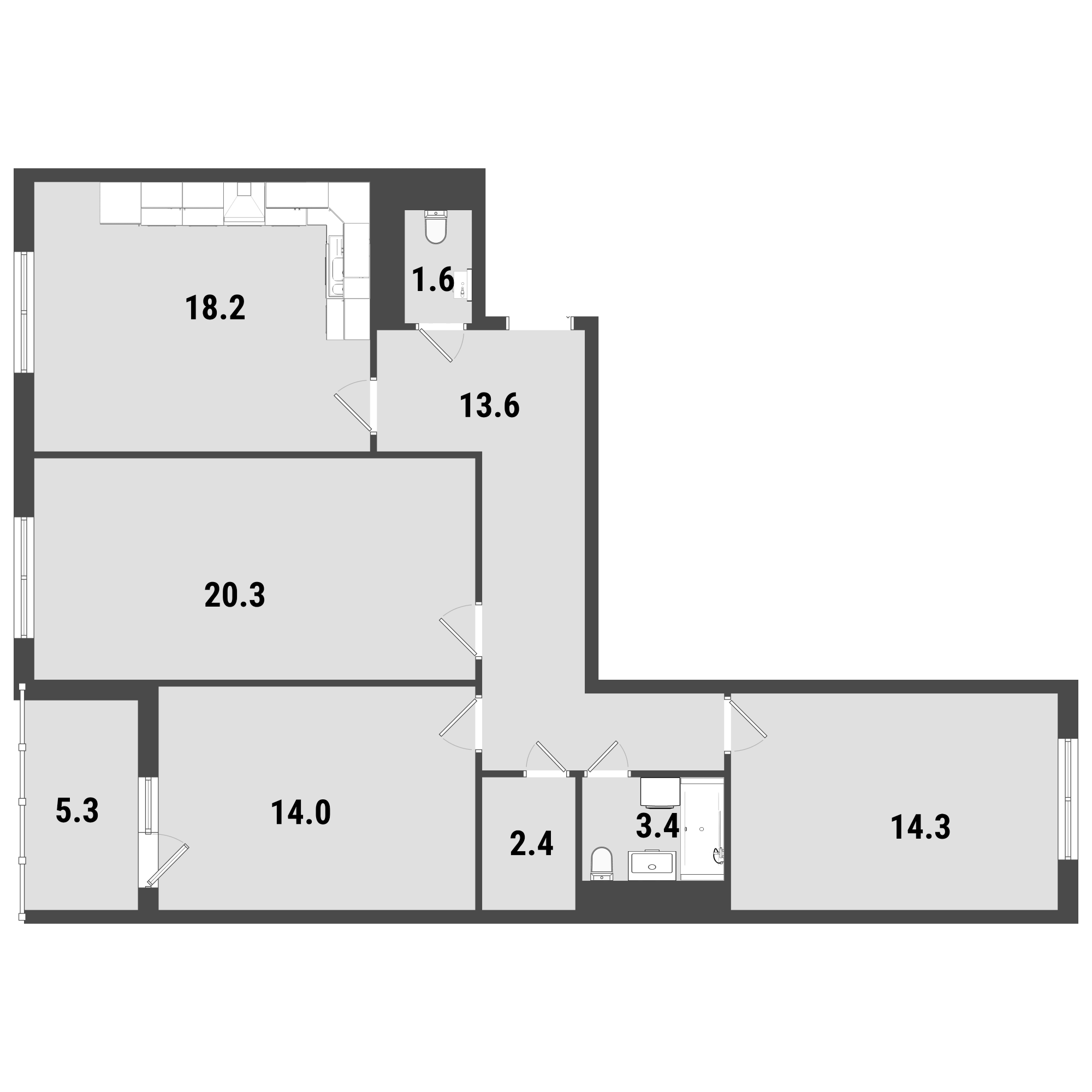 Трехкомнатные представлены в двух вариантах – угловом и распашном. Распашная трешка в евро-формате. В угловой есть необычно расположенная лоджия и два окна в гостиной.