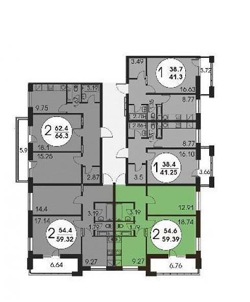 Планировки вполне стандартные, за исключением некоторых двушек, где кухня размещена между двумя жилыми комнатами.