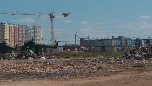 Страховка страховкой, а своими глазами увидеть стройку будет не лишним. Однако не тут-то было. Въезд на стройку охраняется и меня строго попросили вернуться, так что я ничего не успела увидеть, только старые вертолеты, горы мусора и строительный кран вдали.