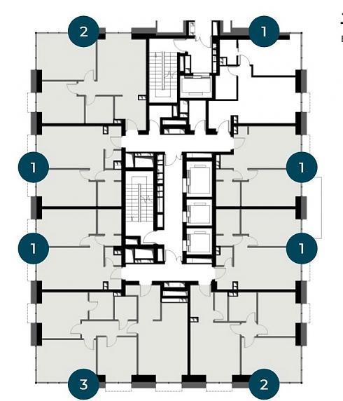 В продаже квартиры более чем 100 планировок. Это одно-, двух- и трехкомнатные квартиры классической планировки площадью от 25,5 до 105,5 кв.м. На одном этаже от 8 до 9 квартир, межквартирные коридоры разделены внутренними дверями на две части.