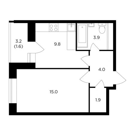 Планировка однокомнатной квартиры 32,96