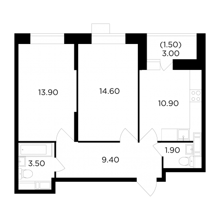 Планировка двухкомнатной квартиры 57,3