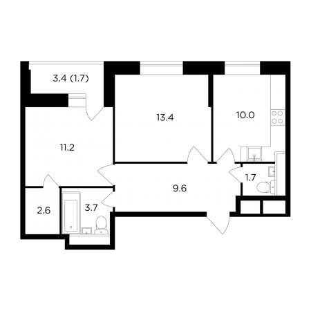 Планировка трехкомнатной квартиры 73,9