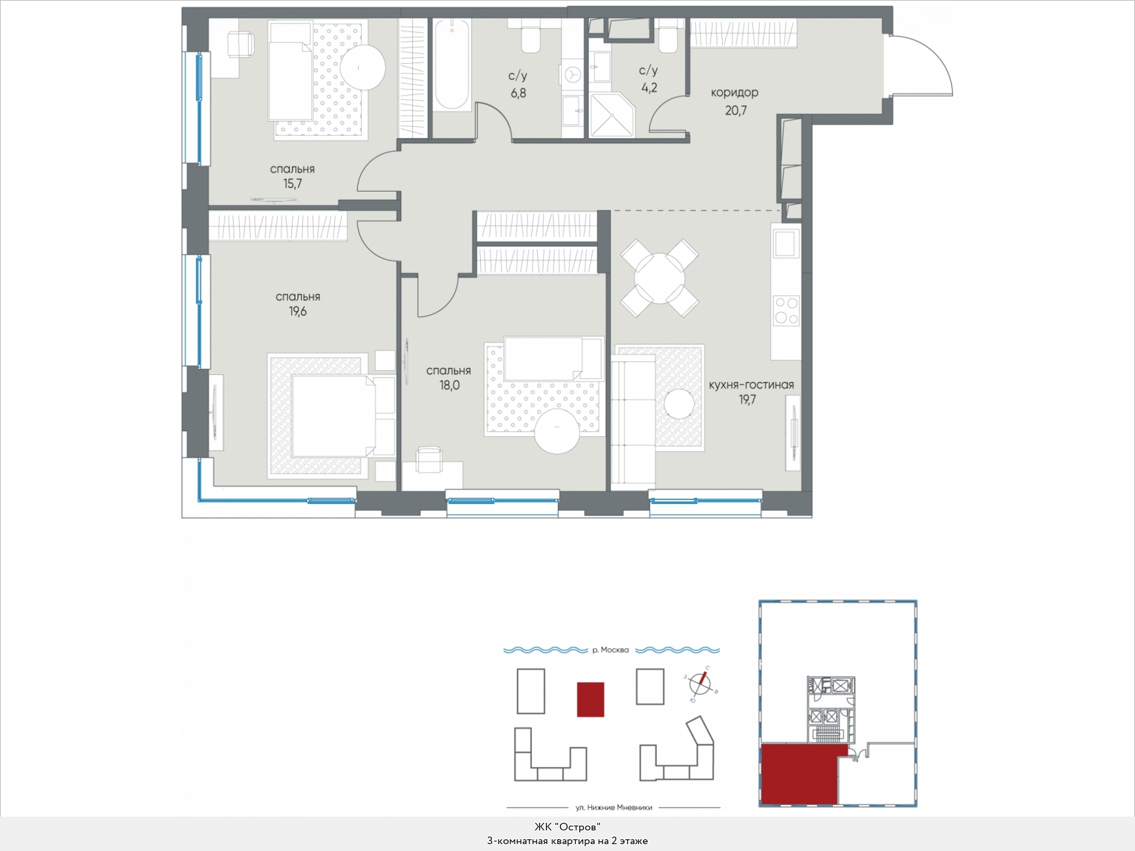Остров – это когда вокруг вода. А жилой комплекс «Остров» - это когда вокруг идеальная экология, совершенное благоустройство и максимальный уровень комфорта классов «премиум» и «де люкс». Ну, и вода, конечно, тоже, ведь заповедная Мневниковская пойма благодаря ряду искусственных водных сооружений стала островом в прямом географическом смысле слова. Это московский остров, омываемый Москвой-рекой. И прописка у островитян тоже московская.