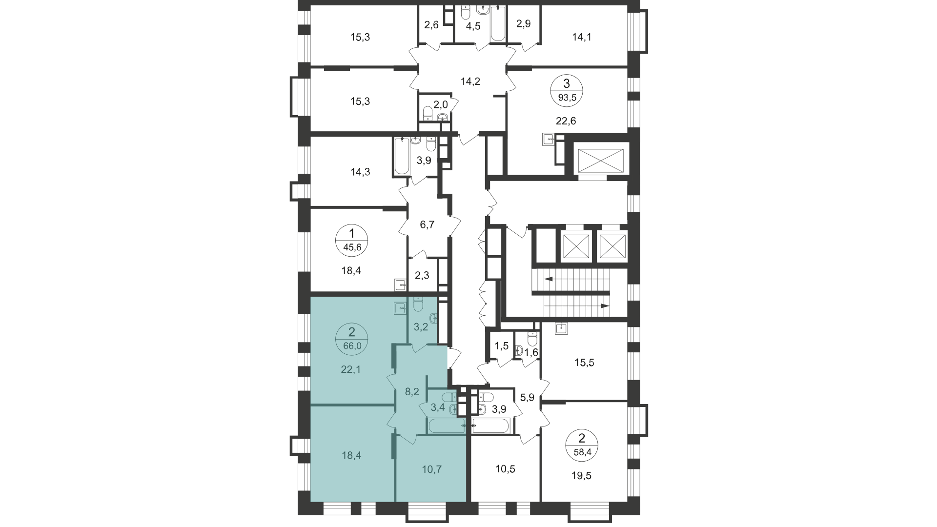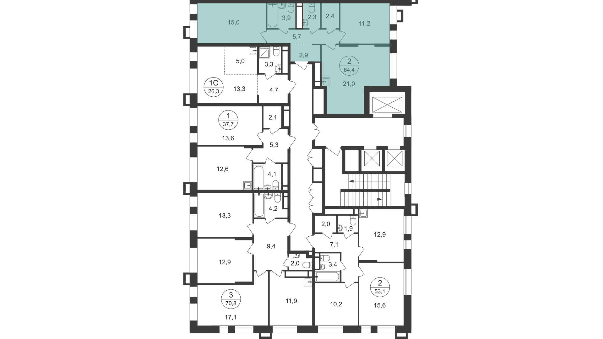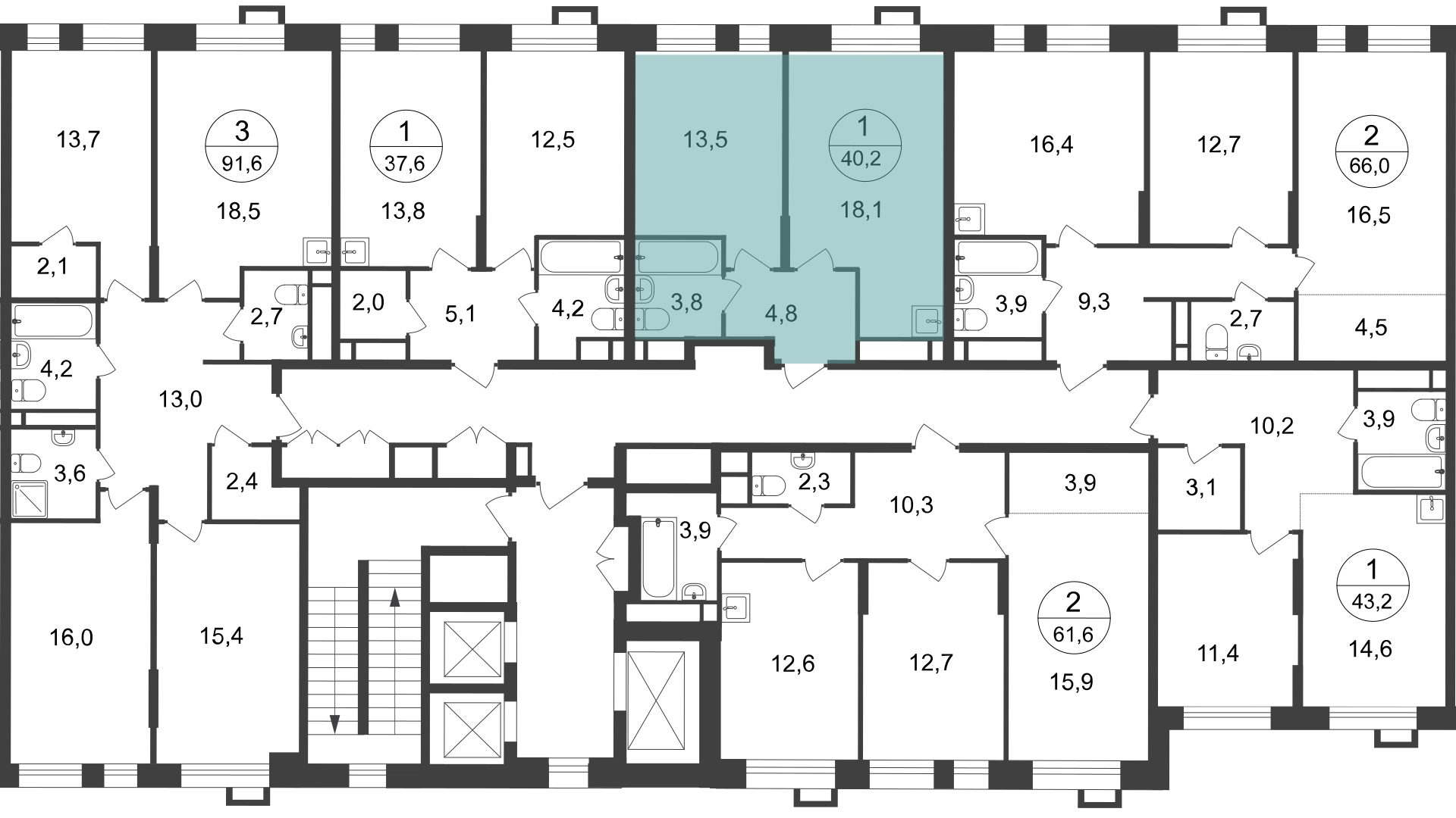 Интереснее планировки в «башнях» (КОЭП), но в начале октября в продаже квартир в «башнях» практически не было. Тем не менее, поэтажный план таких зданий можно рассмотреть.
