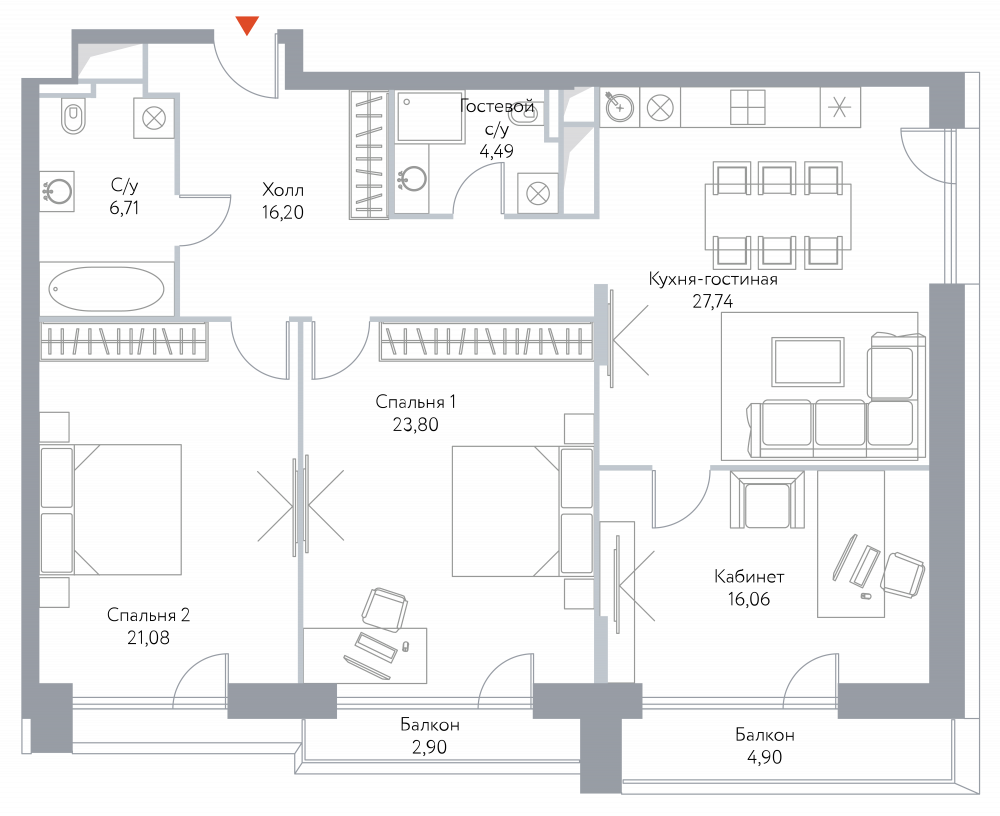 | Июнь 2023 | 57,7-79,7 м2 | 26 186 161 - 41 535 814 ₽ | ~497 956 ₽ | 5.92% |