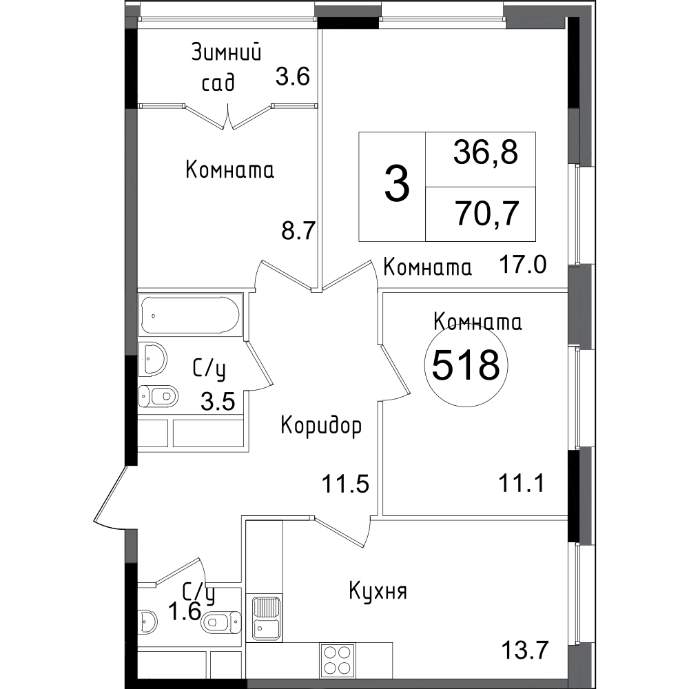 В базовом варианте квартиры передаются без отделки и без межкомнатных стен. Добавлю, что полет дизайнерской мысли не ограничат несущие элементы и пилоны внутри квартиры, потому что их здесь нет. С поэтажным планом и с нашим разбором планировок мы предлагаем ознакомиться на портале Квартирный Контроль. В корпусах 1.1 и 1.2 застройщик предлагает выполнение предчистовой отделки. Если вы рассматриваете квартиру с готовой отделкой под ключ, то ваш вариант – корпус 1.3. Предчистовая включает в себя возведение и выравнивание стен, стяжку пола и разводку электрики и коммуникаций. Финишная отделка класса комфорт включает полный спектр подготовительных работ, оклейку стен обоями, укладку ламината и плитки, установку дверей, розеток и выключателей. И, конечно, оборудование санузла.
