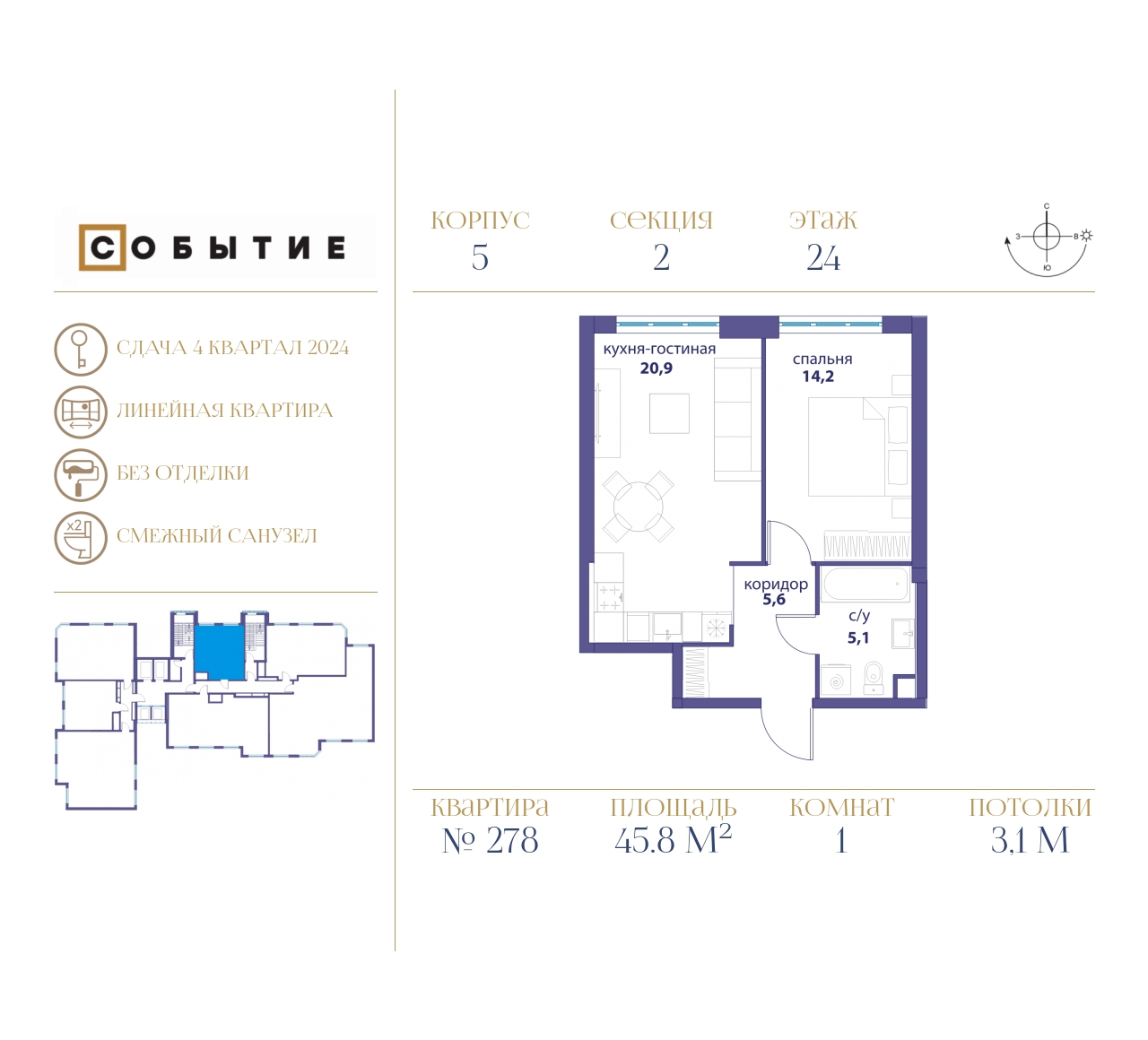 Сентябрь 2023 106.8-163.3 м2 51 497 850 - 94 023 241  ₽ ~538 767  ₽  19.99%