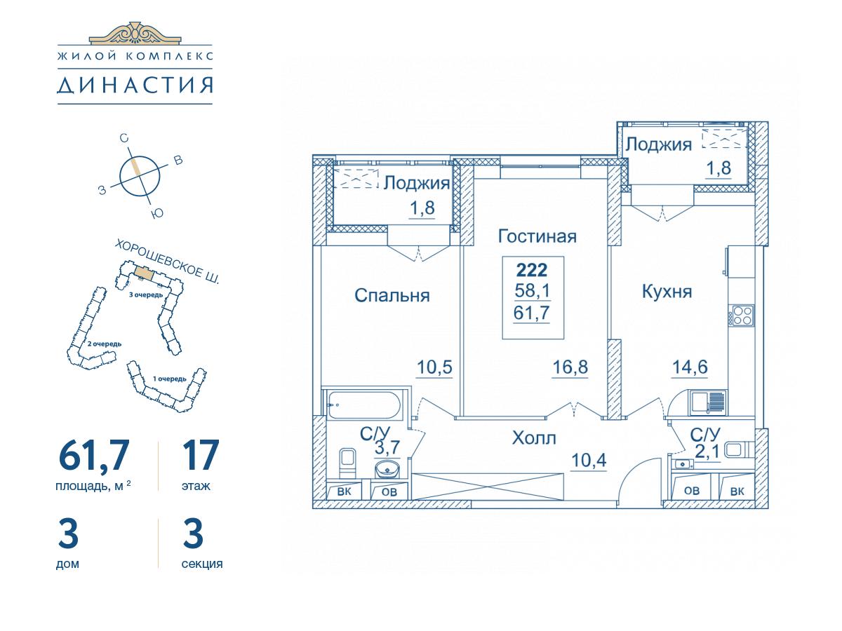 | Июнь 2017 | 58,4-74,3 м2 | 11 096 000 - 18 203 500 ₽ | ~221 966 ₽ | |
