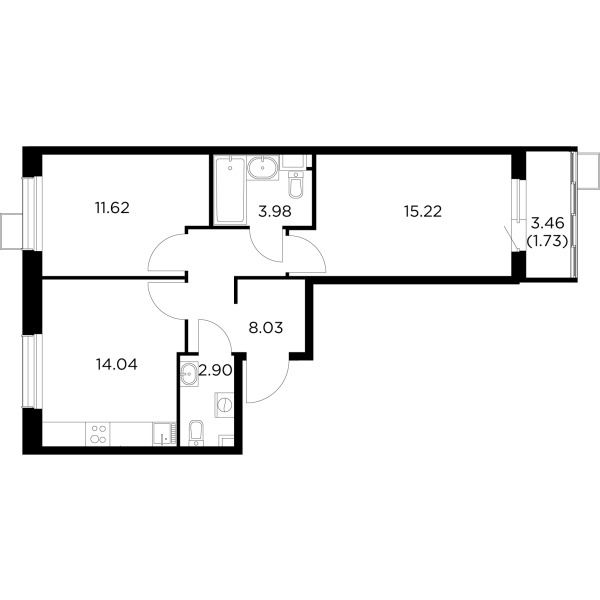 | Февраль 2022 | 36,5-61,5 м2 | 4 063 624 - 6 356 306 ₽ | ~107 422 ₽ | -38.54% |