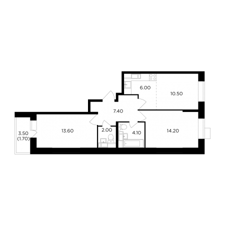 | Июнь 2020 | 55,4-73,9 м2 | 4 459 175 - 6 235 844 ₽ | ~83 555 ₽ | 1.18% |