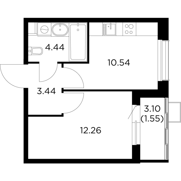 Июль 2019 25,6-26 м2 2 241 433 - 2 300 000  ₽ ~89 048  ₽