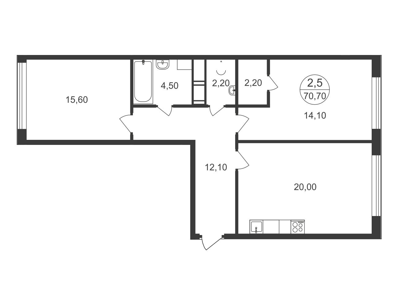Июль 2019 51,5-70,7 м2 6 616 140 - 9 903 972  ₽ ~136 530  ₽  7.04%