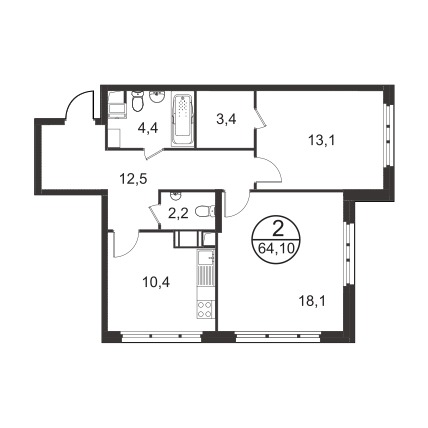 Июль 2018 51,7-64,1 м2 6 415 722 - 8 549 200  ₽ ~130 130  ₽